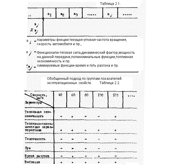 Кроме того, можно говорить об обобщении различных групп показателей для оценки эксплуатационных свойств автомобилей на перспективу, так как расширение их номенклатуры и возможность их сопоставимости в функции, например, скорости движения принципиально важно. Этот подход на базе сравнительного анализа продемонстрирован в таблице 2.2. Таким образом, можно даже разнородные показатели свести в единообразную форму и сравнивать их для различных автомобилей.