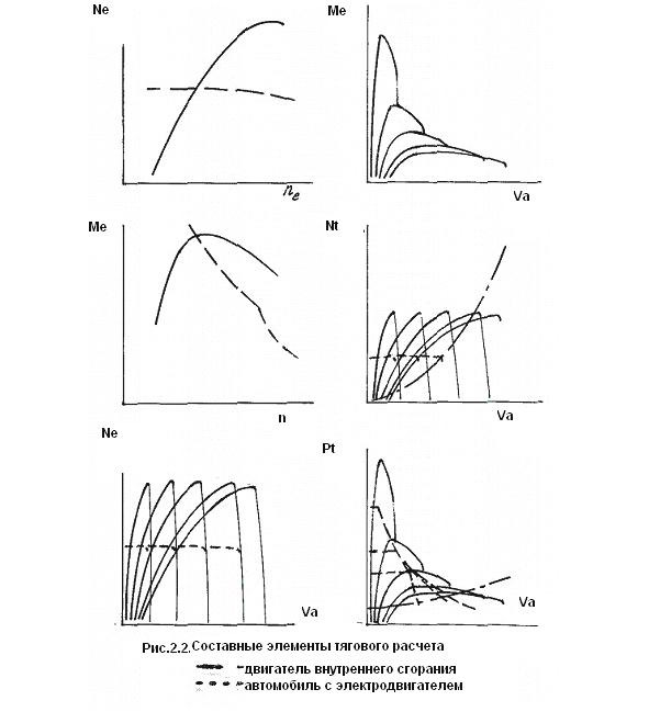 2.4.Элементарный тяговый расчети его табличный вид.(классические методы)Тяговый расчет является основным известным методом для определения тягово-скоростных и топливно-экономических свойств автомобиля. Однако, он обладает большой погрешностью, так как основан на графоаналитическом методе, из чего следует, что он обладает большой неточностью. Поэтому используя функционалы интегрирования удается не только увеличивать точность расчетов благодаря методу интегрирования, а не графического сложения. но и сделать этот процесс менее трудоемким, простым и быстродейсгвующим. Тяговый расчет в сжатом виде можно представить в виде таблицы 2.1—2.2,а некоторые его составные элементы представлены на рис.2.2.В самом обычном варианте этот метод удобен для расчетов: