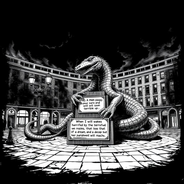 Младшая дочь, подойдя к зеркалу, посмотрела на себя и сделала вывод, что ее рост становится все выше и ей не надо теперь подниматься на носочки, чтобы дотянуться до того или иного предмета. Помыв руки, она хотела почистить зубы, но просто умыла свое лицо, выключив кран с водой. Она подошла к окну и увидела, как город просыпается вместе с ней. Машины едут с включенными фарами. Свет на уличных фонарях еще не погас, и большая часть зданий сияет утренней зарей. Она посмотрела на свою любимую башню в городе, что так красиво светила ночными огнями. Мама часто возила ее в кафе, расположенное на площади перед башней. Она вспомнила про очень вкусное мороженое, что там продавалось. А еще она посмотрела на административное здание и музей, которые стоят в центре. Стеклянные овальные крыши огромных зданий величественно возвышались над городом своей массой. Еще она любит своих ящер, что стоят на площади между зданием музея, что находится справа, и администраций города, что стоит слева. Еще она помнила подпись на металлической табличке, что была установлена под ними, чья настоящий скелет находится в музее.