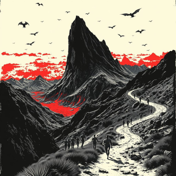 Ее взор был обращен на ущелье внизу, где группа людей, мужчин, бежала облаченными в странную броню, что еле прикрывало их мужское достоинство. Они двигались перебежками, укрываясь от тех, кто преследовал их. Вдруг они резко остановились, разбившись на две группы в разные стороны: левую сторону и правую. За ними летела молодая Абукус. Она подхватила одного из мужиков и бросила его об острые скалы. Он ударился головой, потеряв сознание. Она опустилась на песок посреди ущелья, осматривая ублюдков вокруг. Наклонив свою голову в правую сторону, принюхавшись своими ноздрями, она обратила свой взор в левую сторону. Она пошла к ним, размахивая своим хвостом, который подобен тонкому лезвию. Ее копыта оставляли след на темном песке. Абукус подходила к пещере и, остановившись и подняв свою голову, учуял страхи, которые таились в темноте.