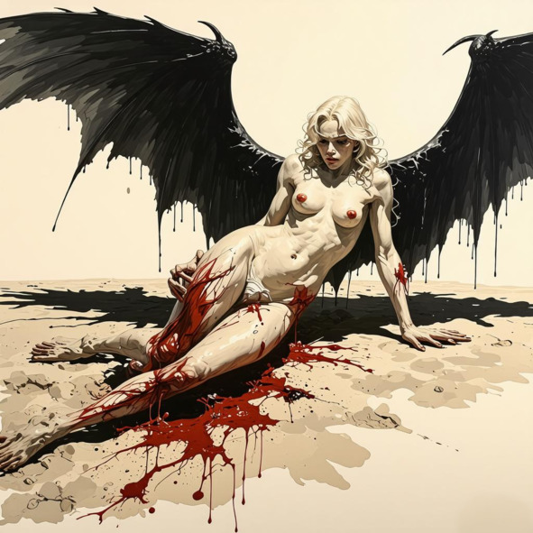 Хромая Абукус перешла к своей натуре и дару, который имел место. Она, меняя свой облик на человека и убирая крылья и хвост, оставляла красивое, тело. Начала извиваться и танцевать, подобно движением змей. Она стала очаровывать их. Почему, вы спросите, ее не убьют и разорвут на части? Абукус увидела, как копье пролетело мимо нее, но никто не вышел к ней ни на шаг. Все держались в тени и не хотели провоцировать тех, кто потянется на ее танцы. Она в движении своего тела ударила ногой о песок, и прошла волна. Многие падшие стали отходить от нее и получили приказ уйти в укрытие. Но ее сила и красота ее тела, лица и ее души обольщали и сыграли свою роль. Падшие пошли к ней, потянувшись к ее красоте. Она же манила их к себе, и многие не знали о ее способностях. Многих силой своим же пришлось тащить обратно в тень. Лидер схватил одного из тех, кто поддался ее чарам, и за волосы оттащил его назад. Но многие вышли из тени, и их было опасно тащить обратно. Падший, что шел на ее зов, показав свою похоть с поднятым хером впереди, первым вкусил удовольствие орального притяжения. Из песка вылезло существо, которое напоминала и змею, и многоножку. Она уцепилась ему в член, волоча его на песок. Его крики привели многих в здравый ум, и они, увидев, где идут, побежали обратно. Падший, который был ближе к пещере, упал на песок, и ему в шею вцепилась эта тварь. Он извивался от боли: в его шею были всажены сотни зубов, что доставляли ему незабываемые ощущения.