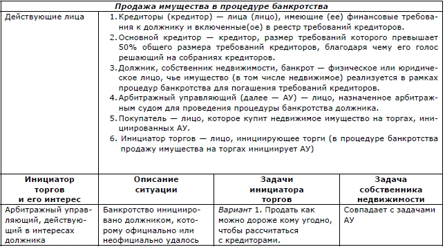 Все они играют особые роли, их интересы могут не совпадать, и от этого может существенным образом меняться не только поведение участвующих в процессе торгов по недвижимости лиц, но и избранная ими стратегия поведения.