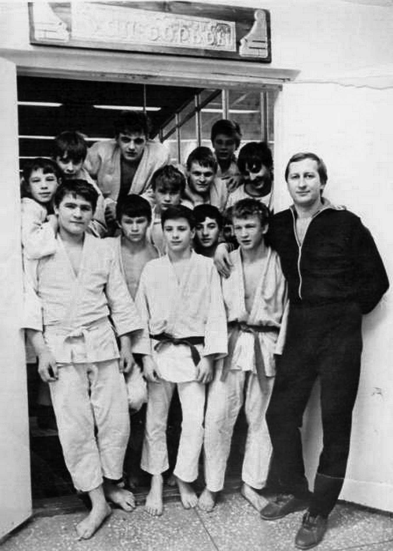 Алексей Казаков с учениками. Дворец спорта «Нефтяник», 1983 год