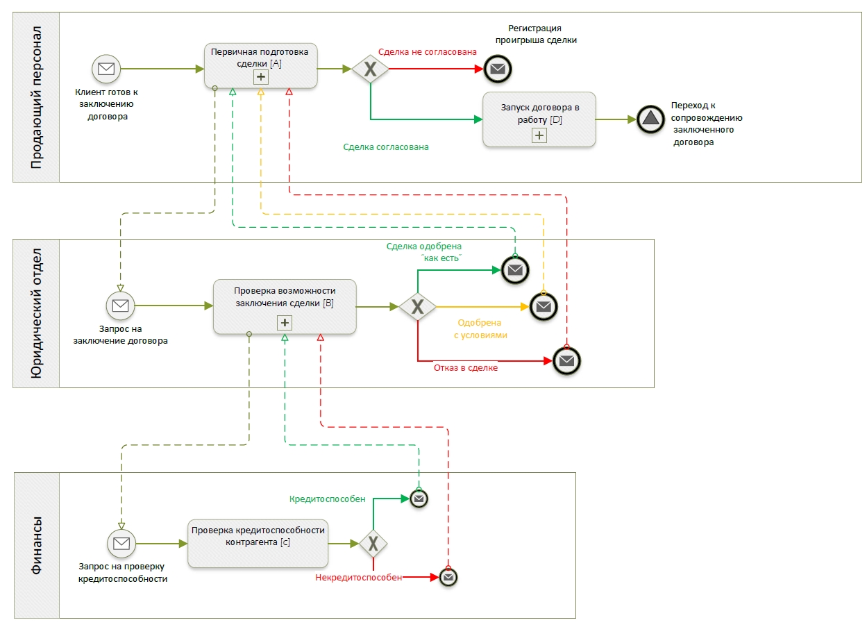 Комментарий: В данном случае я ориентируюсь на то, что вы знакомы с предложенной мной версией БП «Бизнес-процессы. Создание нового договора и поддержание его актуальности. Шаблоны бизнес-процессов (BPMN и EPC). Отдел продаж»