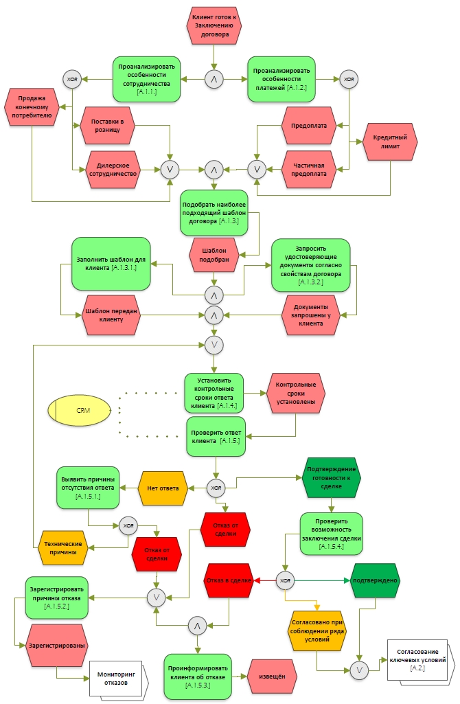Далее, независимо от выбора и после того, как определены особенностей предпочитаемой оплаты клиентом ([A.1.2.]), переходим к «Подобрать наиболее подходящий шаблон договора [A.1.3.]»