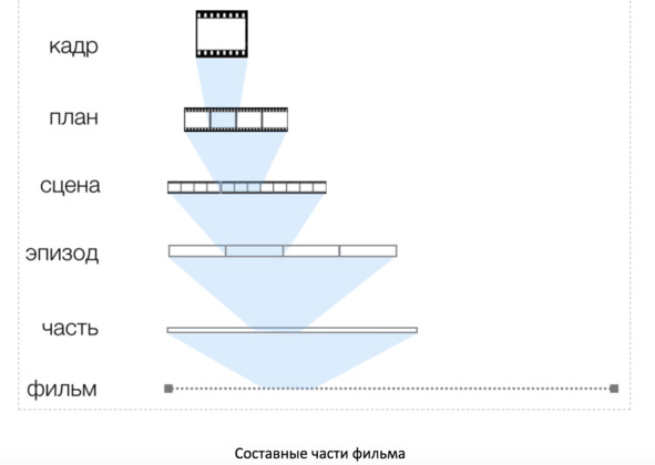 Из кадров составляется сцена, из сцен – эпизод, из эпизодов – фильм.