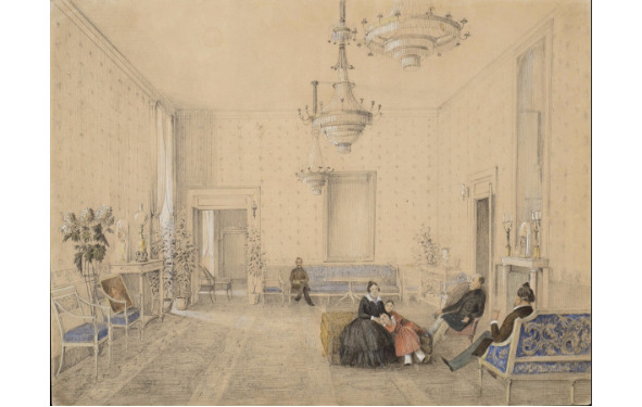 Гостиная в усадьбе Глебовых-Стрешневых Покровское-Стрешнево. Неизвестный художник. Середина XIX в.