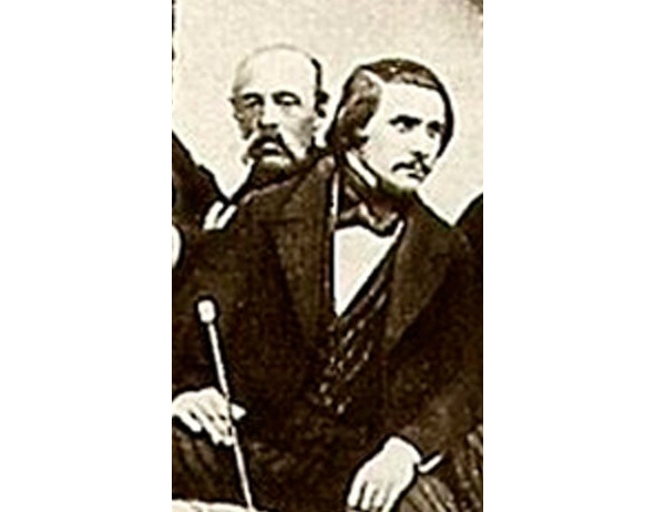 Фрагмент фотографии (дагерротипа). За спиной Н.В.Гоголя – «друг художников» Ф.П.Глебов-Стрешнев.
