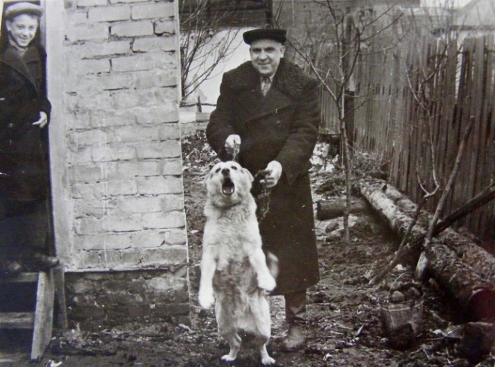 с собакой Дружком и старшим сыном Мишей. Воронеж, конец 50-х годов ХХ в.