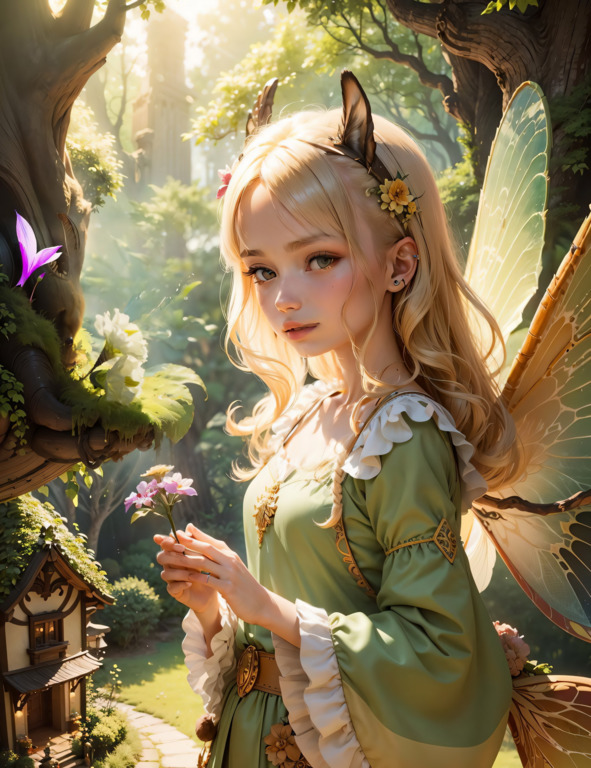Маленькая фея Флора с золотыми крыльями и светлыми волосами, жила в маленьком домике, окруженном прекрасным и живописным волшебным лесом. В ее саду цвели разноцветные цветы, высокие деревья увенчивали небо своими густыми кронами, а пение птиц создавало волшебную атмосферу.