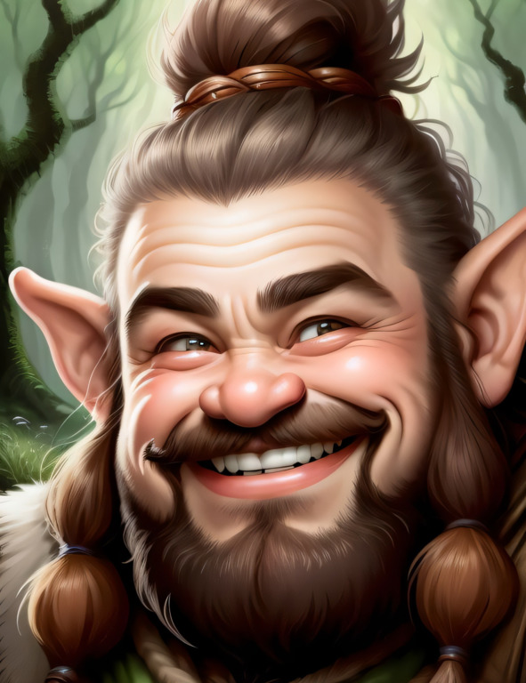 Флора и Луна продвигались сквозь гущу леса, их пути пересеклись с маленьким зеленым гномом по имени Землерой. Он имел густую бороду, и его глаза были полны мудрости. Он находился рядом с большим деревом и разговаривал с птицами и белками.