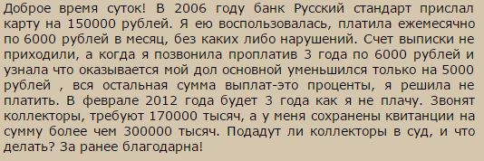 Немного видоизмененную схему использовал еще один банк. Заемщик обращается за получением кредита под 20% годовых и одновременно подписывает договор на банковскую карту с кредитным лимитом. Вроде бы, обычная схема, ничего нового. Но при активации карты и снятии даже небольшой суммы у заемщика тут же образуется невероятный долг по кредитке. Откуда? Оказывается, первоначальный кредитный договор содержит такое условие: «Я поручаю Кредитору… осуществить полное досрочное погашение моей Задолженности по Договору за счет денежных средств из кредитного лимита Карты».