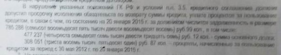Вот, хоть и плохо видно, но можно привести пример (выше). Банк не подавал в суд на заемщика с 2012 по 2015 год, ждал, пока сроки исковой давности позволяли. А потом подал в суд, насчитав процентов почти за три года на сумму 308 тысяч рублей.