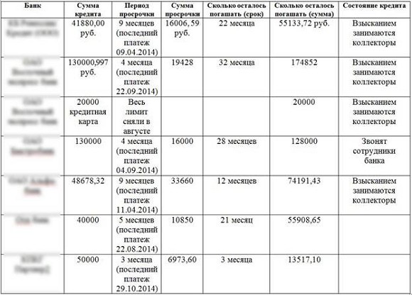 3. Потом посмотрите, какая просрочка по каждому кредиту и сколько времени еще осталось ее погашать.