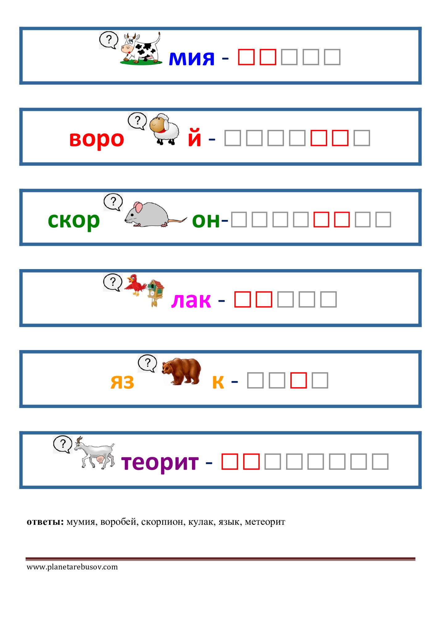 Ребусы, составленные автором для удобства, разделены на возрастные категории: