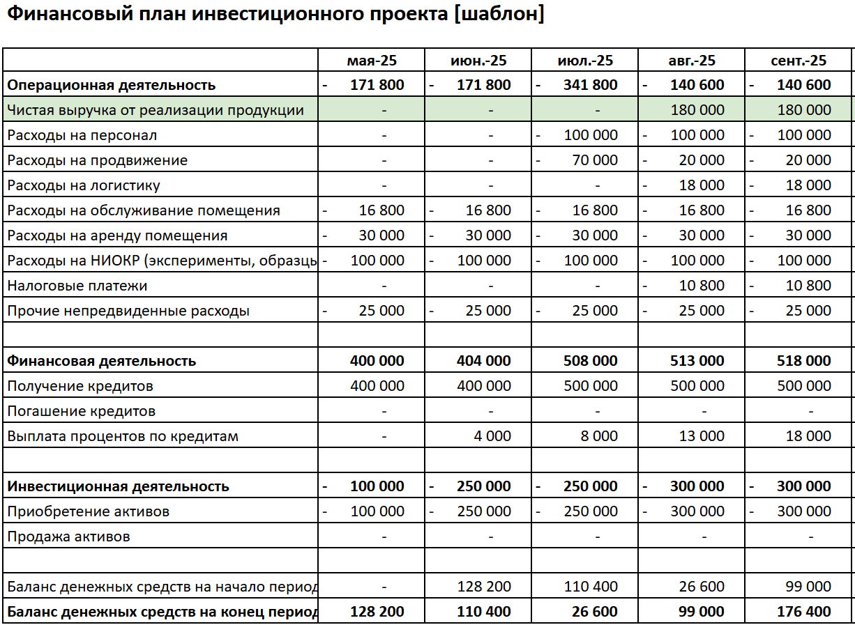 Изображение. Пример финансового плана. Используйте этот шаблон