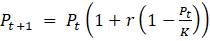1.2.5. Наиболее распространенными способами записи уравнения дискретного логистического роста являются: