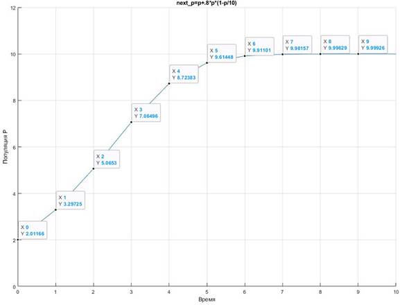 disp('численность популяции: (Например: следующее_p = p+.8*p*(1-p/10) )')