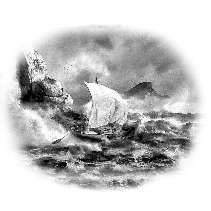 Тот опустил глаза, посмотрел на хорошо сохранившееся и почти не смятое ветром изображение, лежащее в луже морской воды, образовавшейся на палубе от брызг. Что там было нарисовано, самому Богу не было известно, но Человек только глубоко и равнодушно вздохнул, подняв листок, скомкал его и выбросил обратно в море. Затем он поднял паруса, решив не причаливать к берегу, и, развернув посудину, на полной скорости помчался дальше. Лишь только волны в отчаянии хлестали по корме лодки… А листочек, постепенно набухая, всё глубже и глубже уходил под воду. Мечта Смысла жизни обрести хозяина тонула вместе этим маленьким скомканным кружочком бумаги, погружающимся в черноту морской пучины и навсегда прощающимся с солнечным светом.