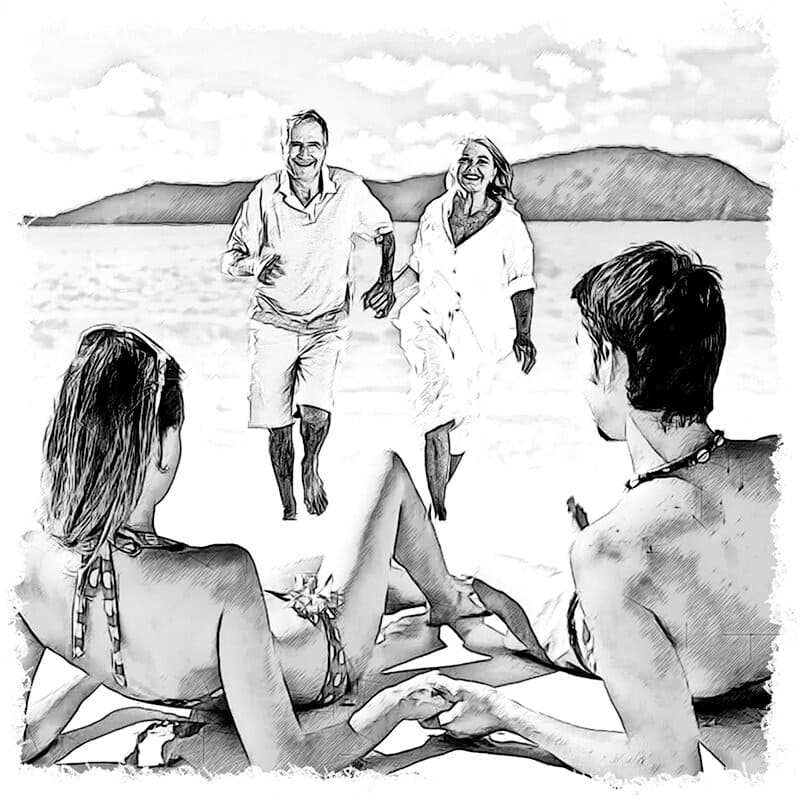 Море тем временем постепенно слизывало рисунок парня из видимости в материальном мире. Переливающиеся на солнечном свете золотистые крупинки и мелкие ракушки были готовы принять на себя творения новых художников и послушать другие причудливые идеи. И только Гордей и Диана, которые недавно отпраздновали топазовую годовщину свадьбы, не могли понять одного – на самом деле они прожили эти сорок четыре года или, может быть, когда влюблённые купались, произошло перемещение во времени? И им разом вживили память обо всех событиях и переживаниях за этот период…