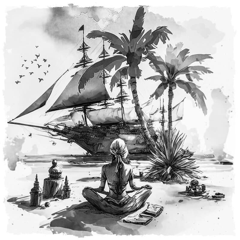 Долго ли, коротко ли плавал в морях и океанах парусник и наконец причалил к незнакомому берегу. Золотой мягкий песок, ковром расстеленный у кромки суши, ярко осветил судёнышко. По-видимому, это был маленький остров, не отмеченный ни на одной карте. Воды захватывали его в кольцо, воздвигнув незримую стену, чтобы скрыть райский уголок от посторонних глаз. Остров был пологим, словно круглая сковородка. Не было ни гор, ни единого холмика, в которые мог упереться взгляд. Экипаж сошёл на берег и углубился в центр загадочной территории. С трудом пробираясь сквозь заросли деревьев и лиан, моряки вышли на поляну с ярко-зелёной травой. В самом центре, скрестив ноги, сидела Она – Истина…