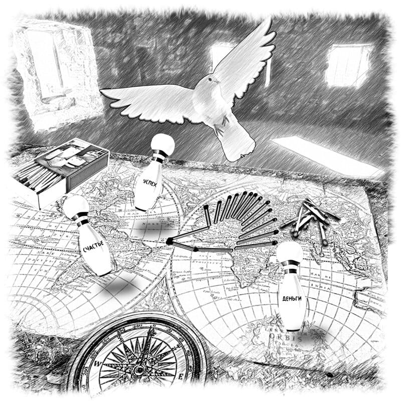 Тонюсенькая и вытянутая продукция «Плитспичпрома» начала сама собой выстраиваться в забавного ёжика, бегущего по зелёной травке. Спичечный ребус, пробиваясь сквозь туман неопределённости, одновременно вонзал свои иголки в точки, отвечающие за стрессоустойчивость. Непреодолимые обстоятельства в виде коричневых кучек, бомбочками лежащих на карте, захохотав при виде смешного зверька, перестали быть непреодолимыми. Они превратились в обычный и очень даже полезный навоз.