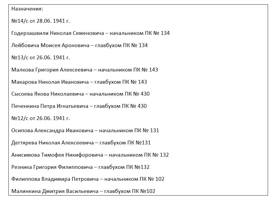 Полагаю, необходимым назвать имена этих достойных уважения людей, учитывая, что в Западных районах Украины, особенно в Ровенской области, бойцам Красной Армии с первых дней войны часто стреляли в спину. Начальник ПКГ № 557 Георгий Зиновьевич Шевченко, бухгалтер Михаил Михайлович Щербаченко, кассир Василий Никанорович Синкевич (приказ от 11.07. 1941 г. по ПК № 132 при штабе Юго-Западного фронта). Они предпочли идти воевать, а не затеряться где-то на оккупированной территории и выжидать: чья возьмет?
