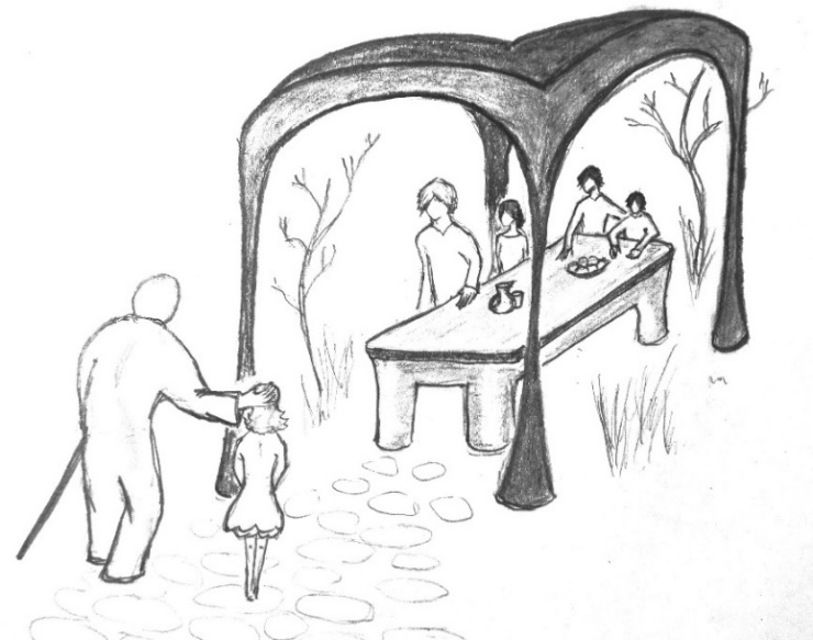 Из-за куста сирени вышла девочка, лет шести, худенькая, с белой, почти прозрачной кожей, и с большими серыми глазами.