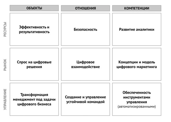 Деление трех тематических блоков на три уровня образует предметную матрицу теории управления цифровой трансформацией.
