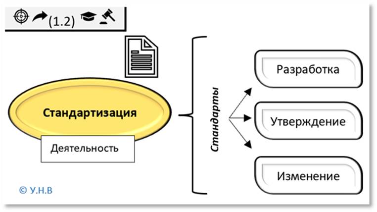 На рисунке 1.18 представлена визуализация термина стандартизация. Управление процессами, связанными со стандартами, является сложным процессом.