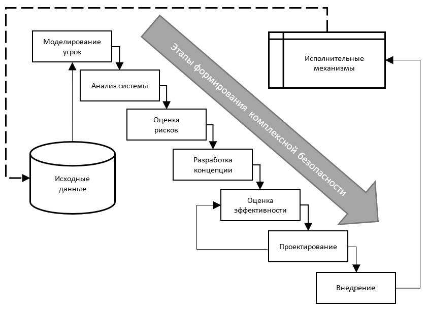 Этапы формирования системы комплексной безопасности включают в себя следующие самостоятельные направления: