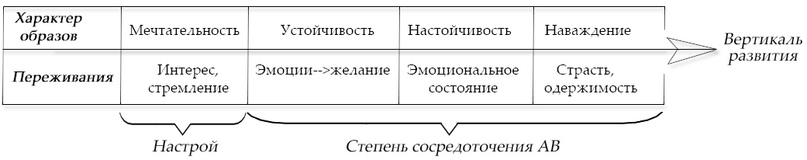 Рис 1. Вертикаль роста внимания бессознательного (автоматического внимания)