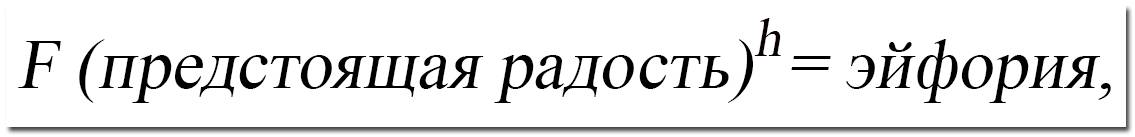 где F – желание/интерес (от 0 до состояния страсти), то есть данный параметр определяет внутренний настрой на предстоящую радость; h – определенная математическая степень, то есть речь идёт о совокупности ожидаемых событий, либо об одном, но эмоционально сильном (h=1, F- жажда/состояние страсти).
