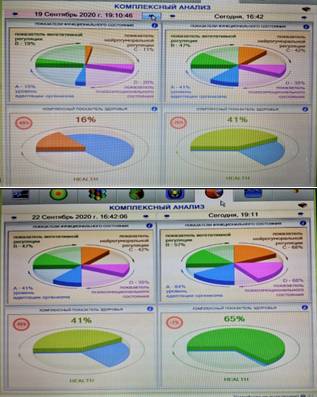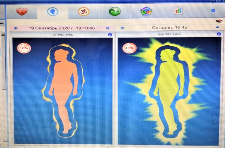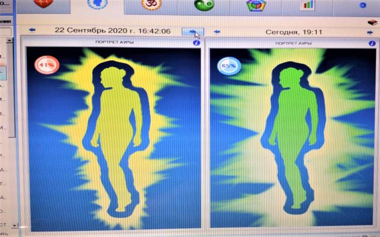На фото наглядно показана быстрая динамика восстановления по многим жизненным показателям. При этом не было прямого вмешательства на физическое тело человека. Осуществлялась только чистка от сторонних энергетических структур, в которую входило обнаружение причинно-следственных связей, спровоцировавших негативные влияния извне. И радует то, что в современном мире при использовании современных компьютерных технологий эти измерения можно фиксировать в любой момент времени. А приборы обмануть невозможно, так как они показывают только объективные результаты.