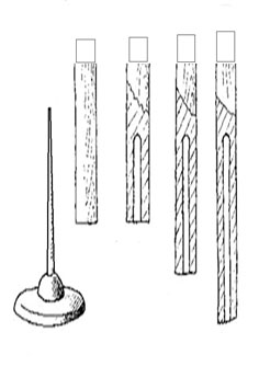 Я не мудрствуя лукаво, благо пороха было полно, начал готовить пороховые смеси. Сделал несколько вариантов, постепенно увеличивая количество древесного угля в смеси. Конечно, если бы это был проверенный современный порох, то проверка была не нужна. Не первый год замужем. Но это был неизвестный мне порох. Заготовил бамбук, но он оказался сырым. Вспомнил, про сараи. Выдернул нужного диаметра стволы, а на их место поставил спиленный бамбук.
