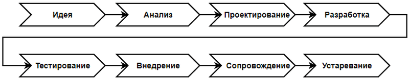Теперь возьмём пример операционной системы. В далёкие времена у кого-то появилась идея создания операционной системы Windows. Вдохновлённый ею человек начал проводить анализ существующих программ на рынке и собирать техническую информацию. Накопив необходимые данные стало понятно – нужно создавать. После началось проектирование операционной системы – продумывалось, из каких программ она будет состоять, как программы будут между собой взаимодействовать, как будет выглядеть интерфейс операционной системы. Пройдя этап проектирования, началась разработка – написание кода операционной системы. Создав первую версию, программисты с коллегами начали тестирование работы операционной системы и её компонентов. Убедившись, что операционная система работает, провели внедрение – передали пользователям и научили их работать с операционной системой. Люди пользовались операционной системой, обнаруживали ошибки и сообщали создателям. Те, в свою очередь их исправляли и обновляли операционную систему. Это этап сопровождения. Создатели выпустили новую версию, а затем ещё одну. Первую версию вывели из эксплуатации, так как произошло устаревание, её больше не поддерживали. Так и закончилась жизнь первой версии операционной системы. Это применимо ко всем существующим программам.