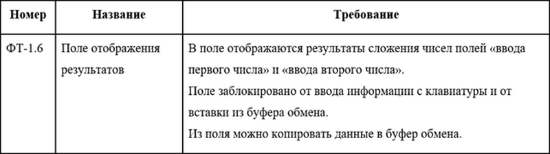 Подтвердить, что заданные требования полностью реализованы в программе – означает необходимость убедиться, что программисты сделали то, что заказчик зафиксировал в требованиях. Рассмотрим на примере. У заказчика есть требование к программе по сложению чисел. Смотрите таблицу: