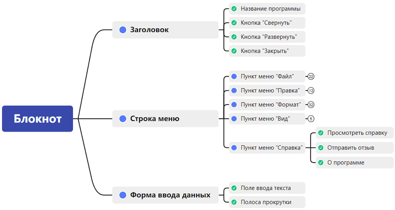 После того как тестировщик полностью создаст функциональную карту, он будет видеть все проверки, которые необходимо провести в программе.