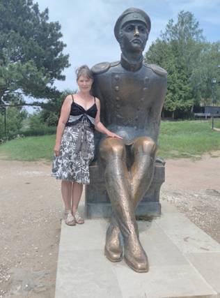 – Ничего себе!!! И как же он не передумал стреляться, сто раз уже можно помириться, даже на пути к подножию Машука!!!! (По незнанию, прошагала три километра!) Наконец-то вижу предполагаемое место дуэли. На самом деле оно где-то рядом в горах. Прошу сфотографировать меня у такого дорогого и памятного места, куда добралась с неимоверным трудом.