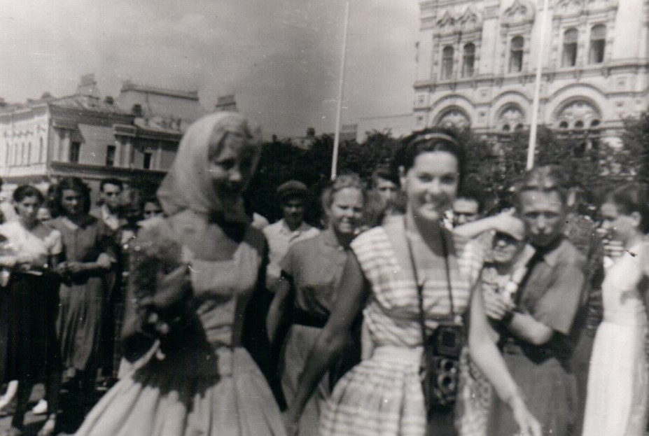Всё утро проторчала на Красной площади, разговаривала по английски. Кто-то указывал руками на все черты лица. И все пели: чи-чи-ли-ли, чи-чи-ли-ли… Это были чилийцы. Потом двое мексиканцев плясали в сапожках на каблуках (казаки), он отбивал чечётку, а она – в тапочках. Все здоровались, пожимали руки, фотографировались. У чилийца была соломенная шляпа и полосатая накидка (теперь узнала, что это называется пончо. И было модно одно время у нас). Все обменивались значками, а мы – пионерскими галстуками. Румыны в национальных костюмах. Турецкие спортсмены настойчиво спрашивали, почему закрыт Grandshop – ГУМ (в четверг он был выходной). Индийская группа только села в автобус, как полилась их песня из окон. Все одеты очень модно, но не ярко и не кричаще. Причёска по последней моде – чёлочка и длинные волосы по плечам (в 2019 и 2022 – повторение).