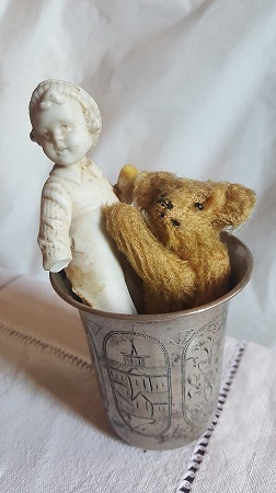 Будучи в Лондоне, я оценила мишку на аукционе Сотбис, но до сих пор он живёт у меня в рюмочке. В мамином письме упоминается и другой мишка, которого она кормит из сосочки. Он без ножек. В нём внутри был металлический флакончик с духами. Я помню, что мохер съела моль, а флакончик до сих пор сохранился. Подробно обо всём в «Сказке о любви» на «proza.ru».