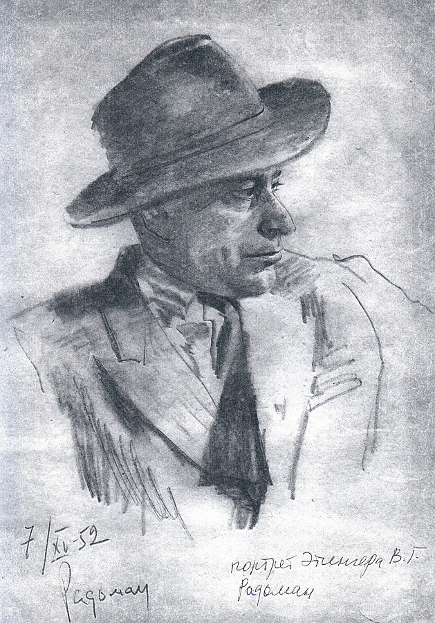 5-й случай. Я ходила на все художественные выставки. В Музее Востока на Никитской, а затем и в зале МОСХа на Беговой была выставка Игоря Радомана. 7 декабря 1954 года он написал два карандашных портрета Володи Этингера. Один я подарила его сыну, разыскав его через сорок лет. Другой висит у меня в комнате.