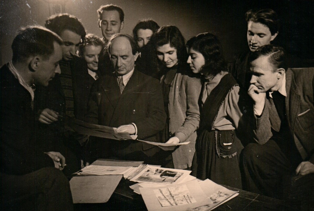 Золотарёв Н.Н., Владимир Этингер 1-й справа, Виктор Чулович 2-й справа, Каманин – преподаватель – 4-й в первом ряду, Гапошкин (секретарь, парторг), Богородская.
