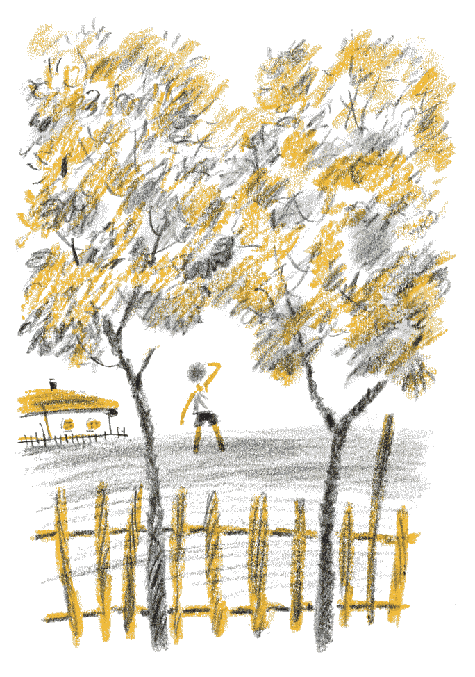 «Надо ее достать», – решил Мишка и, толкнув калитку, зашел в свой сад. Перед домом белого кирпича росли груши и сливы, плоды на них уже начали созревать. Они пахли на весь сад сладко, с чуть ощутимой горечью, и этот запах проникал в дом сквозь закрытые днем ставни. Окна держали открытыми, а ставни затворяли, притеняясь от солнца.