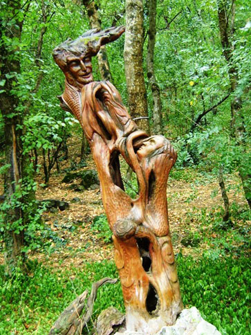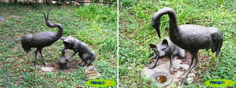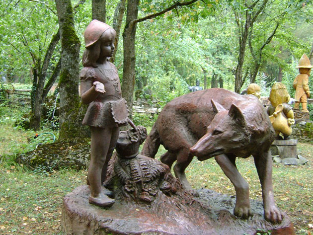 В основном, на заросшей нескошенной травой поляне, за дикими кустами, выползшими на поляну неизвестно откуда, прятались деревянные сказочные фигуры.