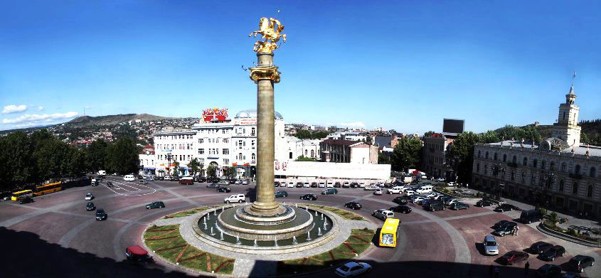 Конечная точка проспекта Руставели, площадь Свободы несмотря на скромные размеры неизменно становится ареной политических баталий. Посреди площади возвышается колонна с подозрительно небольшим золоченым Святым Георгием работы Зураба Церетели.