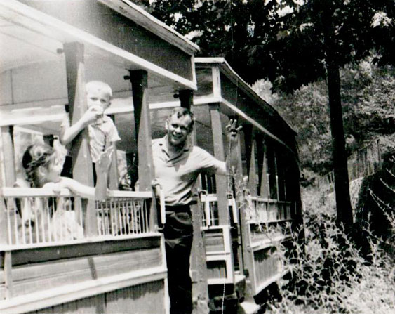 Вся прелесть нашей «экскурсии» заключалась в том, что детская железная дорога – не работала. И наши дети, да и мы тоже могли осматривать её и фотографироваться – сколько душе угодно. На фотографии: Ёлочка, Олежка и Виктор – 1969 год.