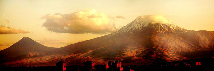 Вечерний Ереван и гора Арарат