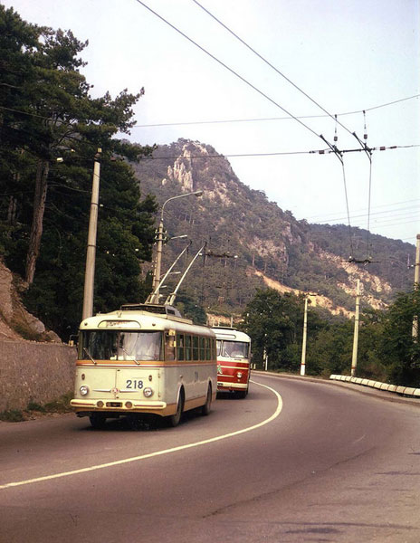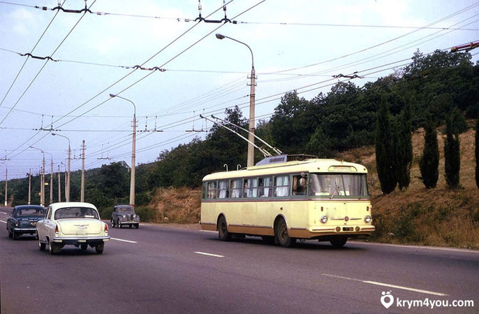 Источник: Статья – «Забытые факты о крымской «дороги к морю»Иван Коваленко, «Крымское Время»Мы ехали по новой дороге от Семфирополя до Ялты. Причём нам и не повезло, а, может быть, – повезло? Мы попали «в хвост» троллейбуса, который еле тащился по горной дороге. Обогнать его было нельзя, и мы тащились за ним всю дорогу до Ялты. Зато Виктору, который первый раз вёл машину по горной дороге вслед за троллейбусом, было, конечно спокойнее в вопросе безопасности.