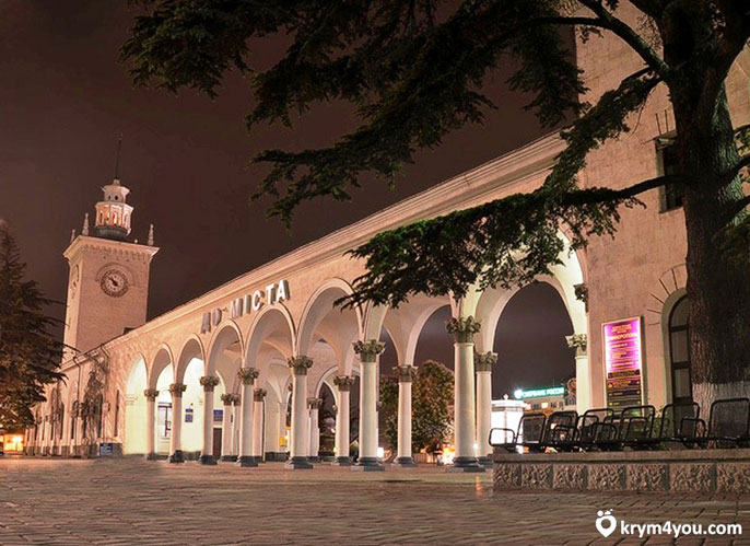 Экскурсия начинается на Привокзальной площади. Здесь, возле башни часов (задекорированной водонапорной башни), расположены троллейбусные кассы. Появились они более пятидесяти лет назад, и по сей день троллейбус стал обычным видом транспорта для жителей Крыма.